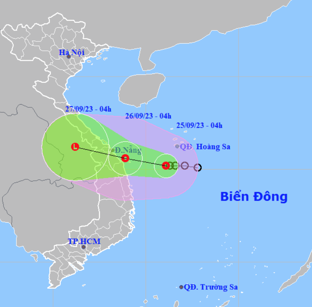 Theo Trung tâm Dự báo khí tượng thủy văn quốc gia, lúc 6h sáng 25/9, vị trí tâm áp thấp nhiệt đới ở khoảng 15.2 độ Vĩ Bắc; 110.6 độ Kinh Đông. Sức gió mạnh nhất cấp 6 (39-49km/h), giật cấp 8.
