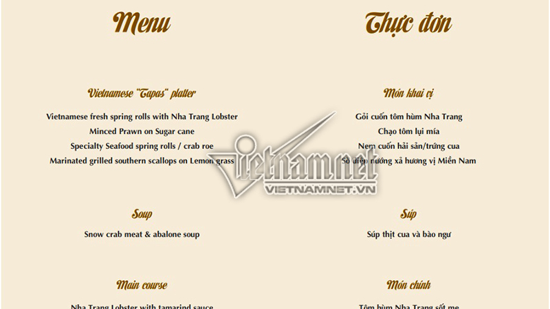 Thực đơn bữa tiệc Chủ tịch nước Trần Đại Quang và phu nhân chiêu đãi chào mừng hội nghị cấp cao APEC gồm các món đậm hương vị Việt Nam.