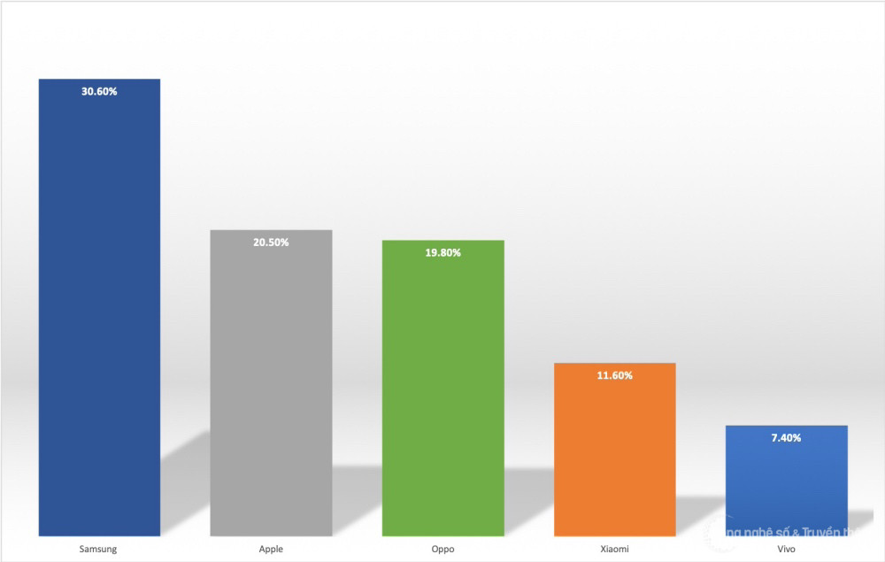 Thị phần iPhone tại Việt Nam vào tháng 10/2022 đạt 20,5%, theo số liệu của GfK. Chỉ nhỉnh hơn Oppo chưa tới 1%, Apple lần đầu tiên leo lên vị trí số 2 tại thị trường điện thoại thông minh trong nước.