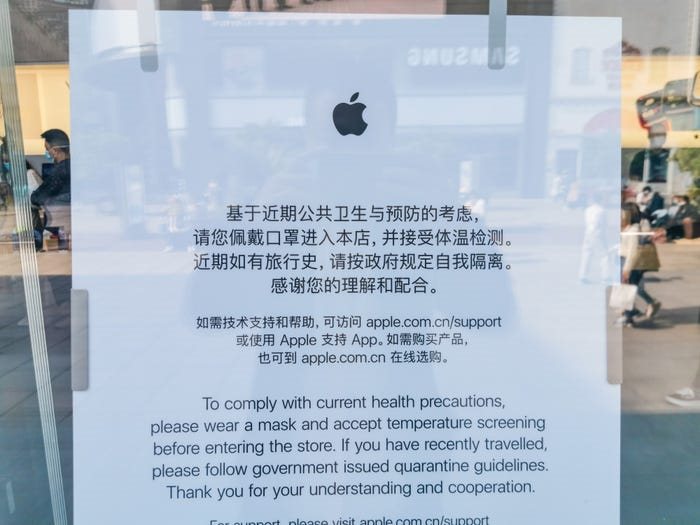 Trước đó, trong tháng 3/2020, Apple đi nước cờ chưa từng có tiền lệ là tạm thời đóng cửa toàn bộ cửa hàng bán lẻ ngoài Trung Quốc, ngay cả trước khi quy định ở nhà được ban hành tại Mỹ. Hiện tại, tất cả Apple Store Trung Quốc đã mở trở lại. Chỉ có số ít cửa hàng tại Hàn Quốc, Áo và Úc được mở.