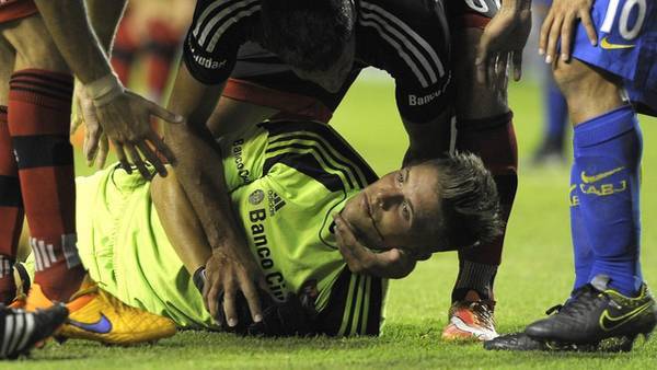 Carlos Tevez, chân sút từng một thời gắn bó với "Quỷ đỏ" M.U vừa vô tình trở thành tác nhân chính gây nên chấn thương nghiêm trọng cho thủ thành đối phương.