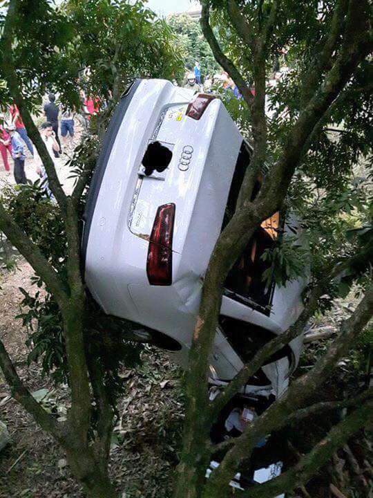 Xe sang Audi bất ngờ leo lên ngọn cây