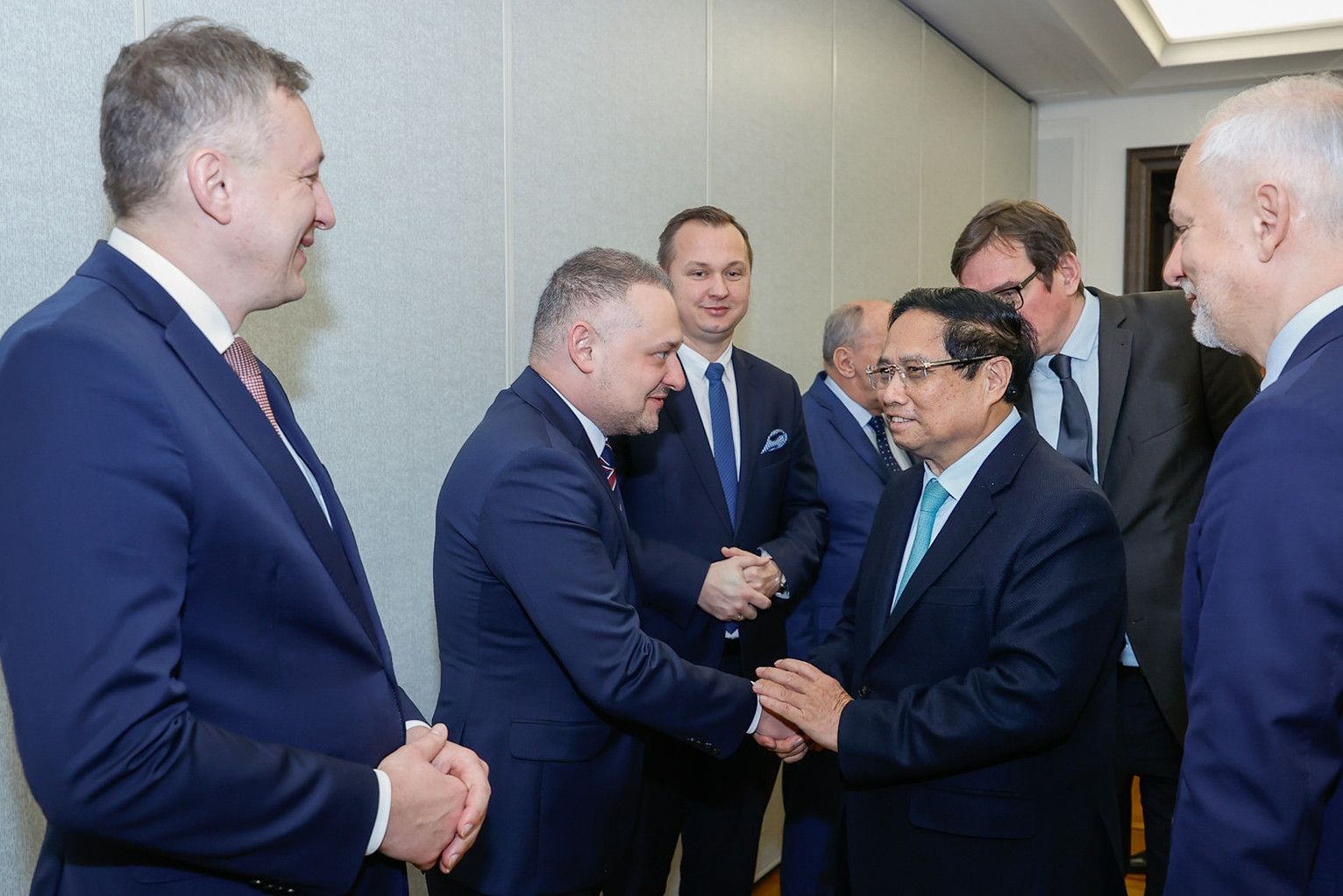 Sáng 17/1 (theo giờ địa phương), trong chương trình thăm chính thức Ba Lan, tại Thủ đô Warsaw, Thủ tướng Phạm Minh Chính đã tiếp ông Michal Fijol - Quyền Chủ tịch Hội đồng quản trị tập đoàn hàng không LOT của Ba Lan.
