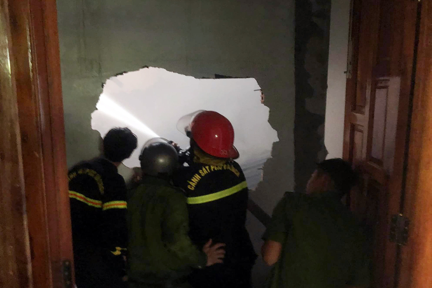 Hơn bốn giờ sau hỏa hoạn, 3 mẹ con mắc kẹt trong ngôi nhà vẫn chưa được đưa ra ngoài. Lực lượng chức năng đang nỗ lực tiếp cận từ nhiều phía để tìm kiếm và giải cứu người bên trong. Nhiều cảnh sát cơ động, xe cứu thương được điều động tới khu vực cháy.