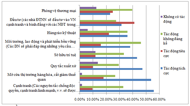 Theo một kết quả khảo sát doanh nghiệp trong các BXH VNR500, FAST500 và V1000 do Vietnam Report thực hiện tháng 1/2016 có thể thấy, về cơ bản các Doanh nghiệp cũng cho rằng hội nhập TPP sẽ mở ra cơ hội cạnh tranh lành mạnh, tiếp cận các thị trường hàng hóa của các quốc gia phát triển khi có nhiều chính sách ưu đãi thuế quan, v.v.