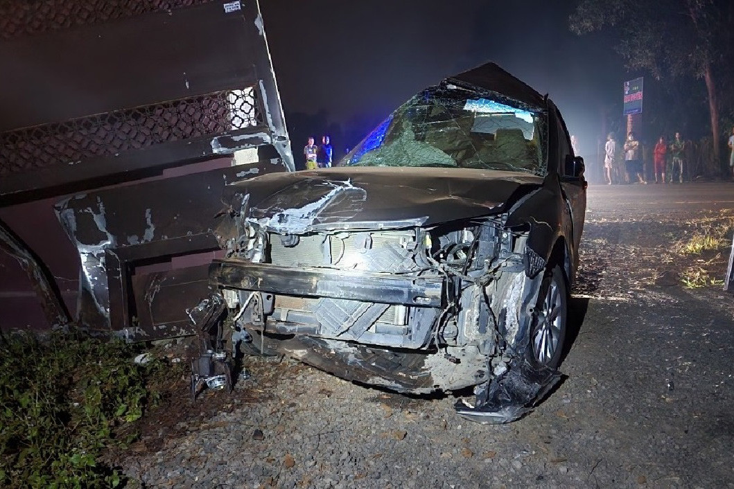 Đâm vào cổng sắt bên đường, hai người tử vong trên ô tô