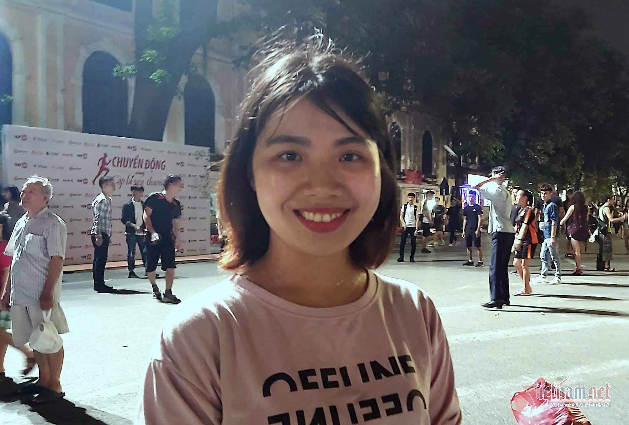 Đến từ Đà Nẵng, cô gái trẻ Trần Ngô Vân Linh ngạc nhiên trước màn biểu diễn: "Rất nhiều lần em ra Hà Nội nhưng đây là lần đầu tiên em thấy phố đi bộ sống động như vậy".