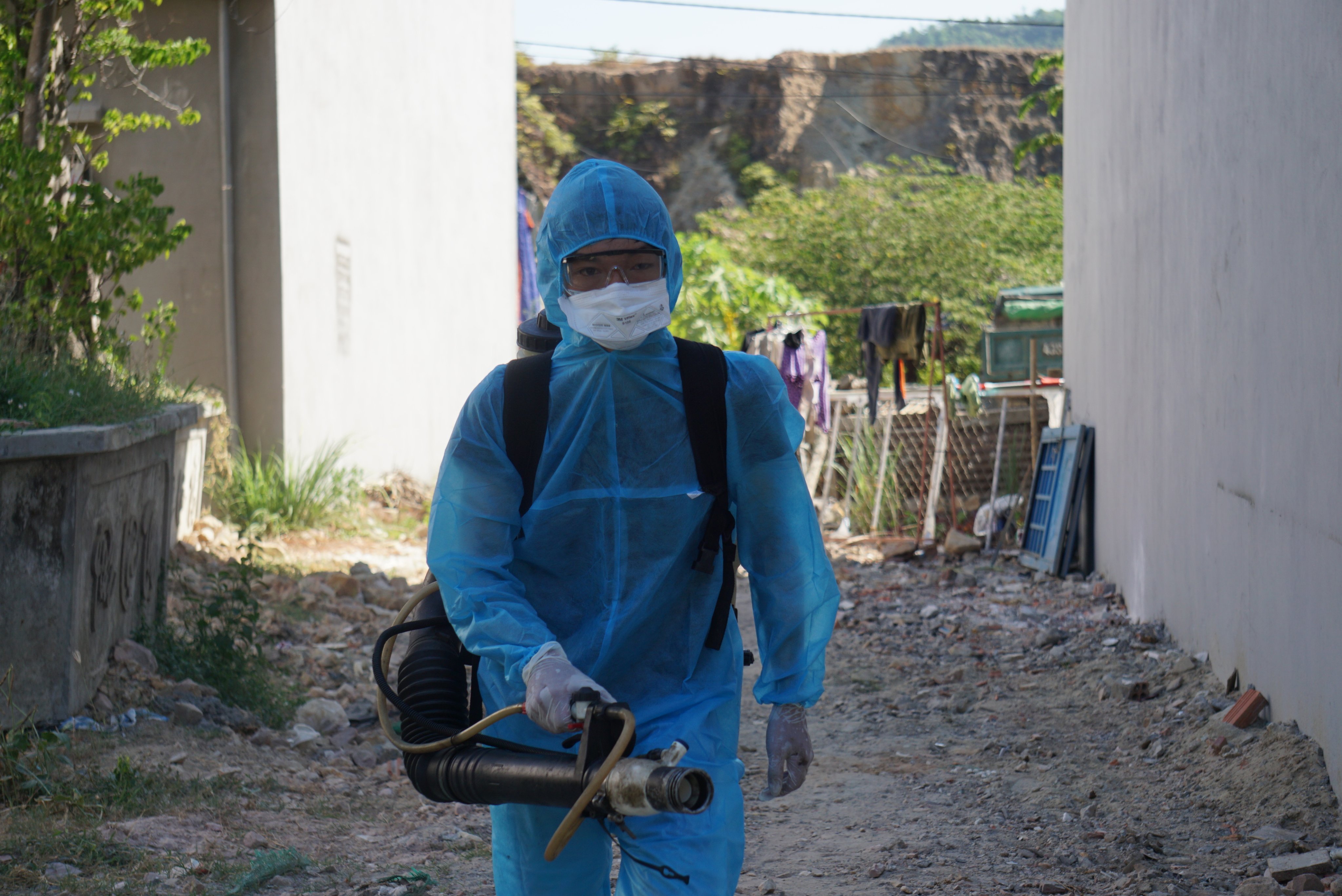 Phun thuốc khử trung nơi bệnh nhân D sinh sống |