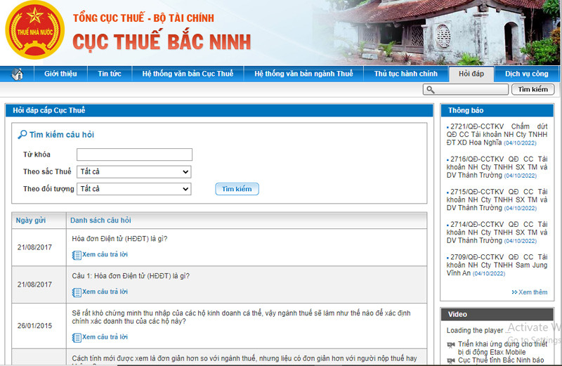 Theo đó, Cục Thuế tỉnh Bắc Ninh đã xây dựng các giải pháp tuyên truyền trực tuyến, hỗ trợ người nộp thuế như: Website Cục Thuế tỉnh Bắc Ninh (http:/bacninh.gdt.gov.vn) với chuyên mục Hóa đơn điện tử giúp tra cứu thông tin cần thiết về chính sách hóa đơn, văn bản hướng dẫn, danh sách các tổ chức truyền nhận dữ liệu, cung cấp dịch vụ hóa đơn điện tử; Tài khoản Zalo office: Thuế điện tử tỉnh Bắc Ninh, số điện thoại 0353.700700 - nơi đăng tải nhanh nhất thông tin liên quan đến triển khai chính sách thuế mới, các hội nghị tập huấn, các thông báo và thư mời gửi tới người nộp thuế; 2 Fanpage Cục Thuế tỉnh Bắc Ninh và Thuế điện tử tỉnh Bắc Ninh - nơi trao đổi, hỗ trợ, giải đáp các vướng mắc cho người nộp thuế khi tạo lập, sử dụng hóa đơn điện tử có mã và không có mã cơ quan Thuế. Cục Thuế cũng thường xuyên gửi các văn bản điện tử, thông báo, thư mời cho người nộp thuế qua địa chỉ email đăng ký giao dịch điện tử, nộp thuế điện tử.