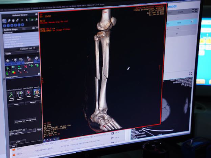 Các bác sĩ quyết định phẫu thuật kết hợp xương kín bằng đinh nội tủy có chốt dưới màn hình tăng sáng. Đây là giải pháp ít xâm lấn, giúp giảm thiểu tổn thương mô mềm và đảm bảo phục hồi nhanh chóng.