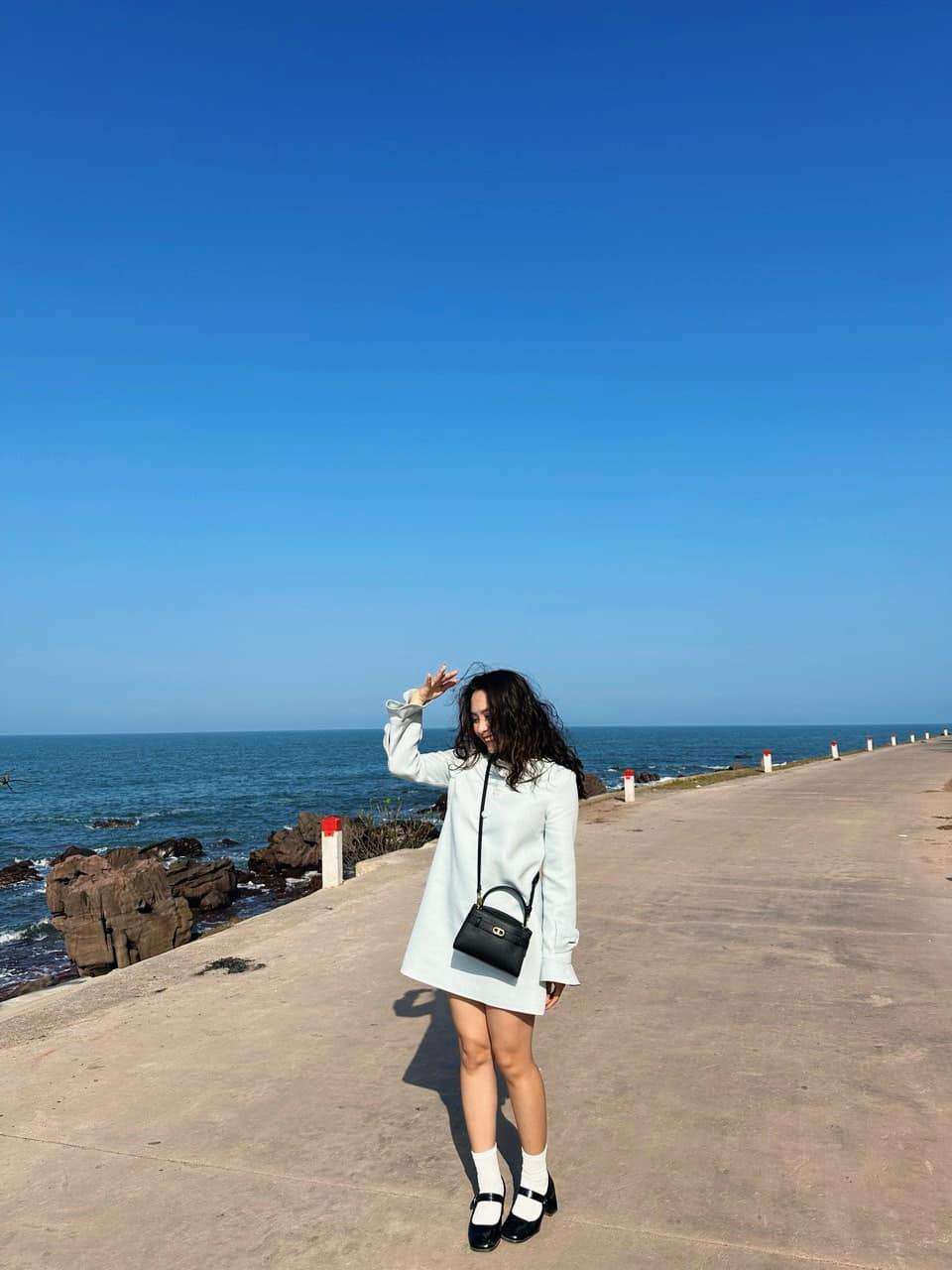 Tuy nhiên mình thấy không có đông người xuống tắm do bãi cát nhiều sỏi. Nơi đây cũng không có nhiều hàng quán", Trang chia sẻ cảm nhận.
