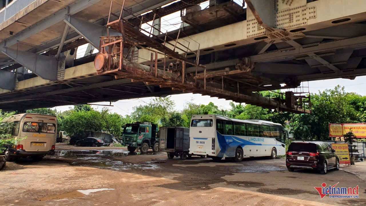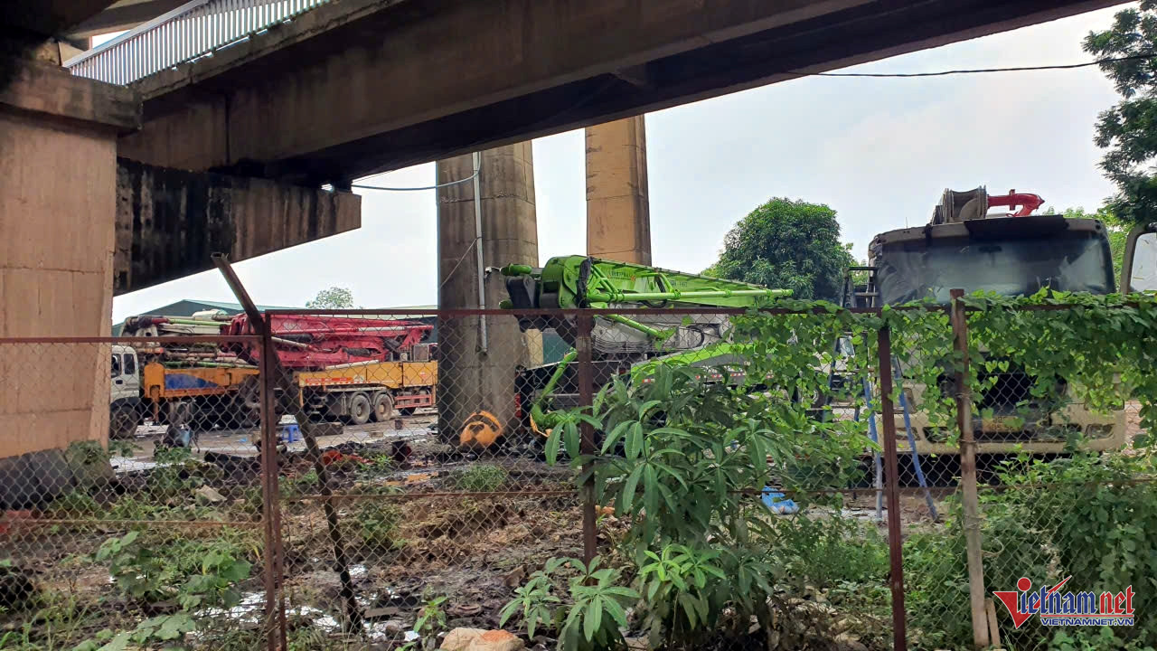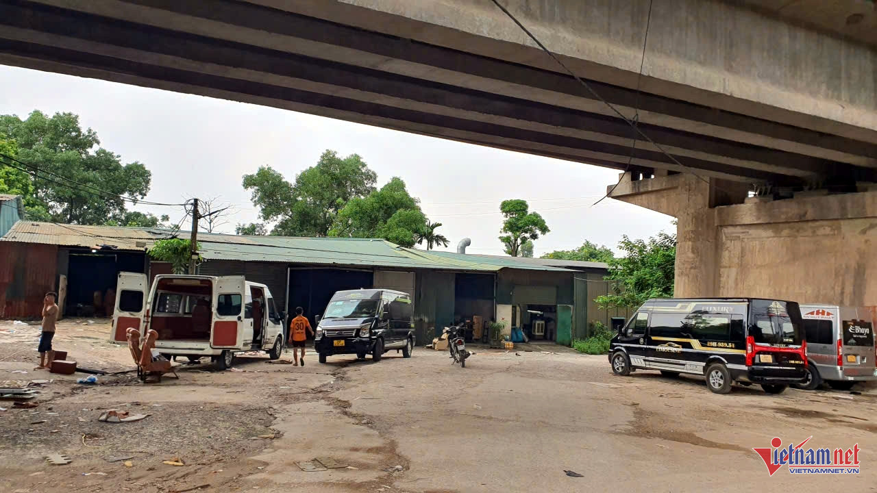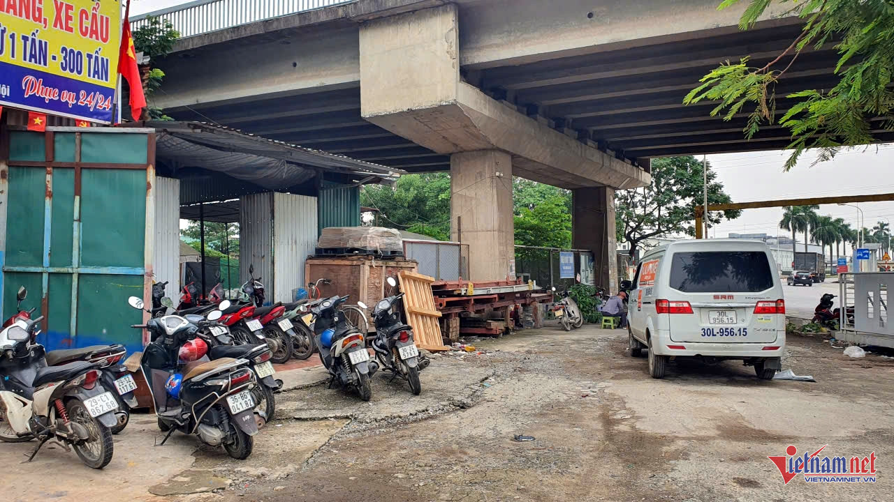 Thế nhưng, dưới chân cầu Thăng Long – cây cầu huyết mạch nối trung tâm Thủ đô với sân bay Nội Bài – vẫn tồn tại nhiều bãi tập kết ô tô, xe máy, vật liệu công trình, thậm chí cả nhà xưởng sửa chữa. Người dân còn dựng lưới B40, quây tôn, biến hành lang an toàn cầu thành “đất riêng” để kinh doanh.
