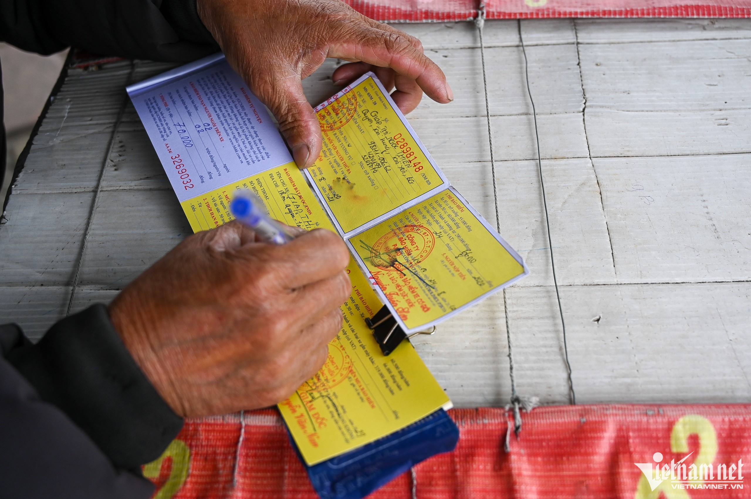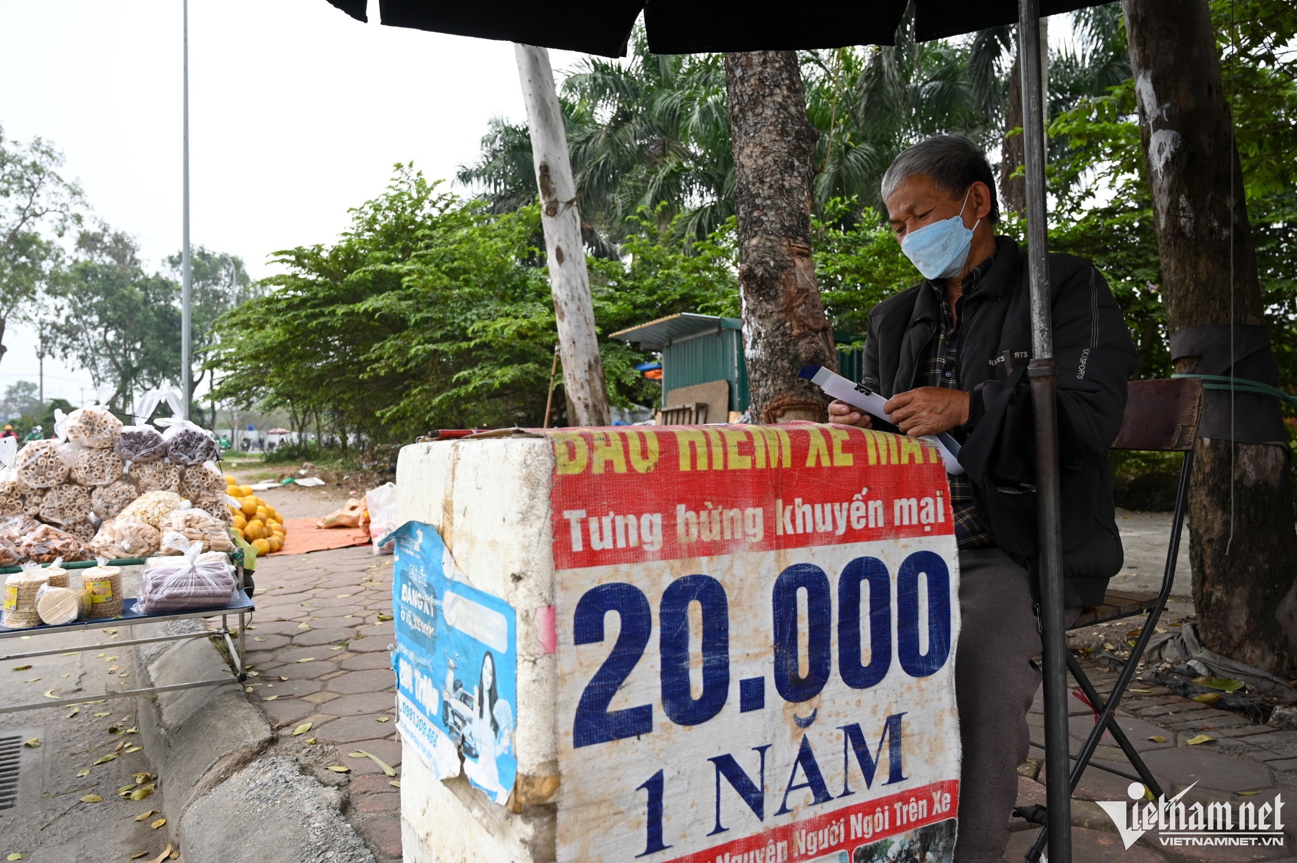 Từ đợt tổng kiểm tra vào tháng 5/2020, thấy nhu cầu tăng cao, bà A. cùng nhiều người khác đã kê bàn ghế bên lề đường Hoàng Sa (huyện Đông Anh) để "phục vụ" từ đó đến nay. “Đợt trước dân còn đổ xô đi mua, bây giờ thì vắng hơn trước, mỗi ngày tôi chỉ bán được 4-5 tờ. Bảo hiểm này chúng tôi mua trực tiếp tại nhà phân phối chính thống và đem bán lại nên đảm bảo là hàng thật", người phụ nữ trung tuổi khẳng định.