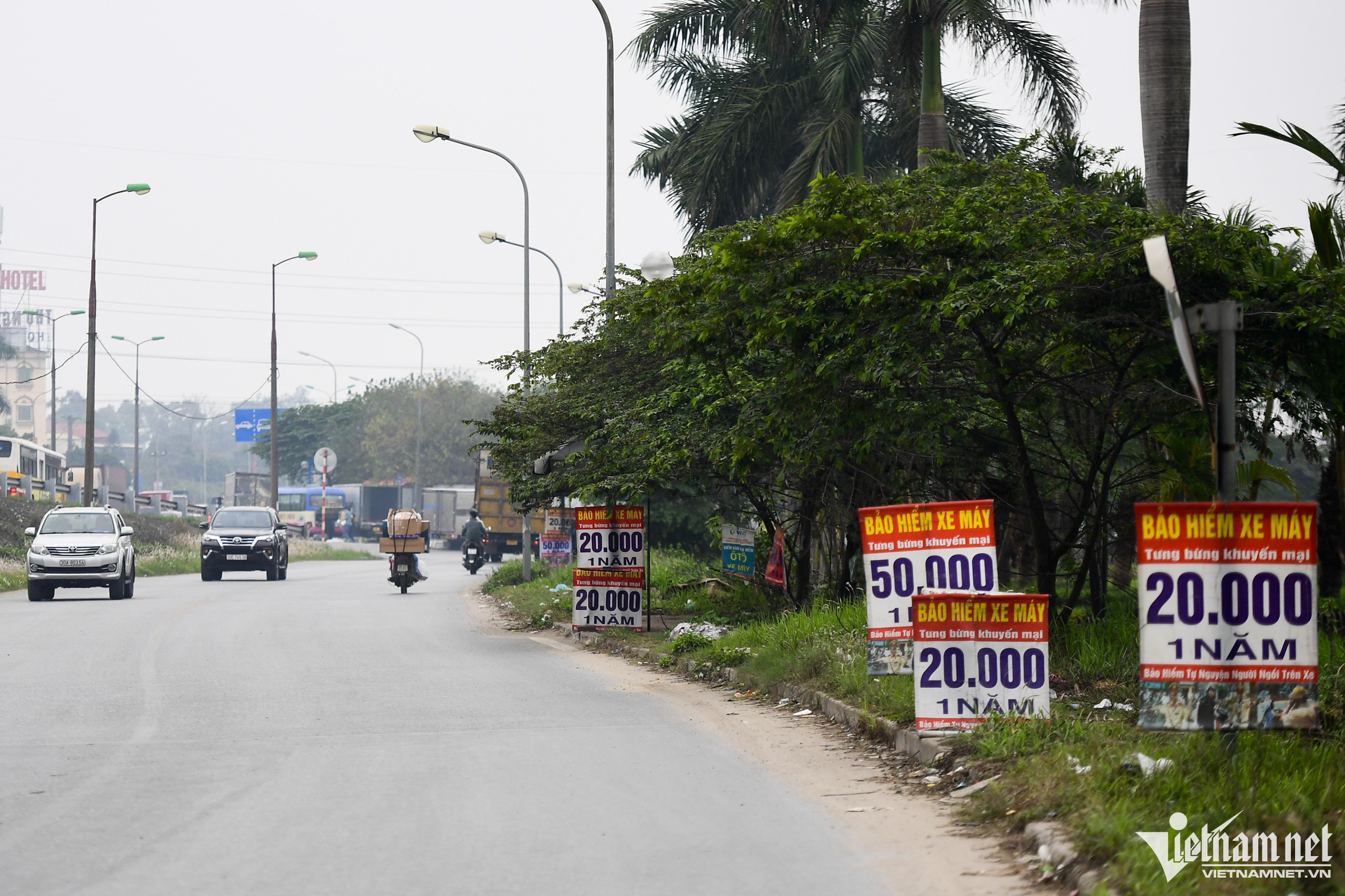 Vài năm nay, những tấm biển quảng cáo bán bảo hiểm xe máy đã xuất hiện dày đặc bên lề nhiều tuyến đường ở Hà Nội như Hoàng Sa, Phạm Văn Đồng, Hồ Tùng Mậu...