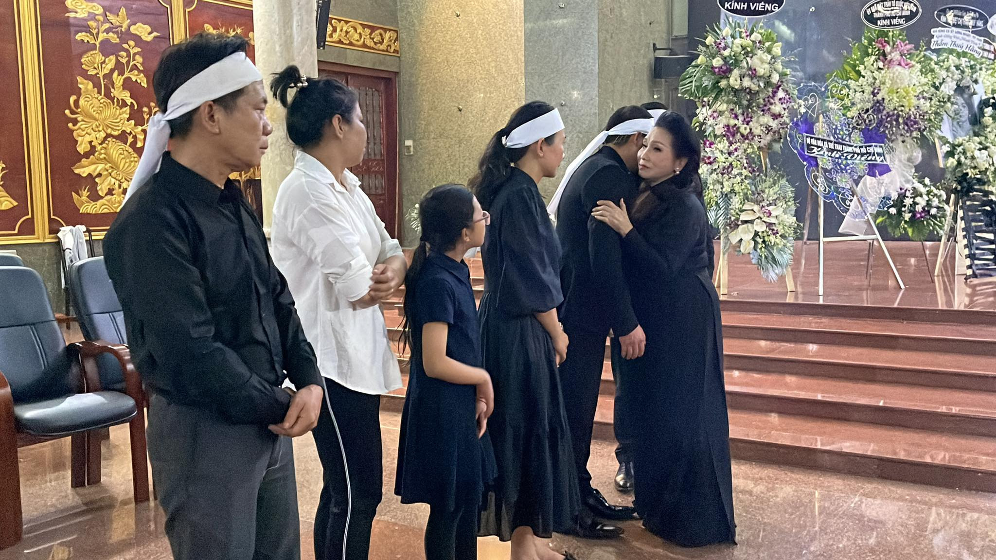 NSND Kim Xuân cùng một số đồng nghiệp không kìm được nước mắt khi đến tiễn biệt đàn chị đã dìu bước mình lúc mới vào nghề.