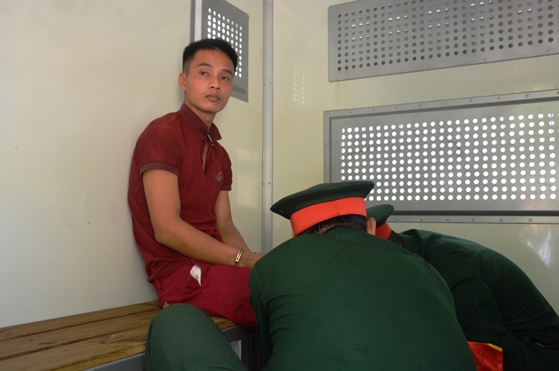 | Được dẫn giải ra xe, Triệu Quân Sự nở nụ cười |