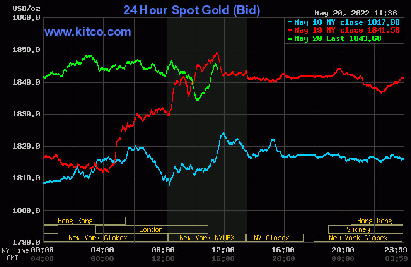 Trên thị trường vàng thế giới, giá vàng giao ngay chốt phiên tại Mỹ tăng 24,5 USD/ounce lên 1.841,5 USD/ounce. Giá vàng tương lai giao tháng 6/2022 trên sàn Comex New York tăng 25,3 USD lên mức 1.841,2 USD/ounce.