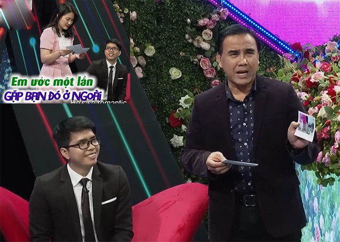 Điều khiến Hồng Gấm và khán giả bất ngờ là đàng trai mang ảnh bạn gái cũ đi hẹn hò. MC Ngọc Lan cũng phải hốt hoảng vì hành động này của nhà trai. Không chỉ vậy, Bá Học cho biết, anh thần tượng một mẫu hình trên mạng và rất mong muốn được gặp người đó ngoài đời.