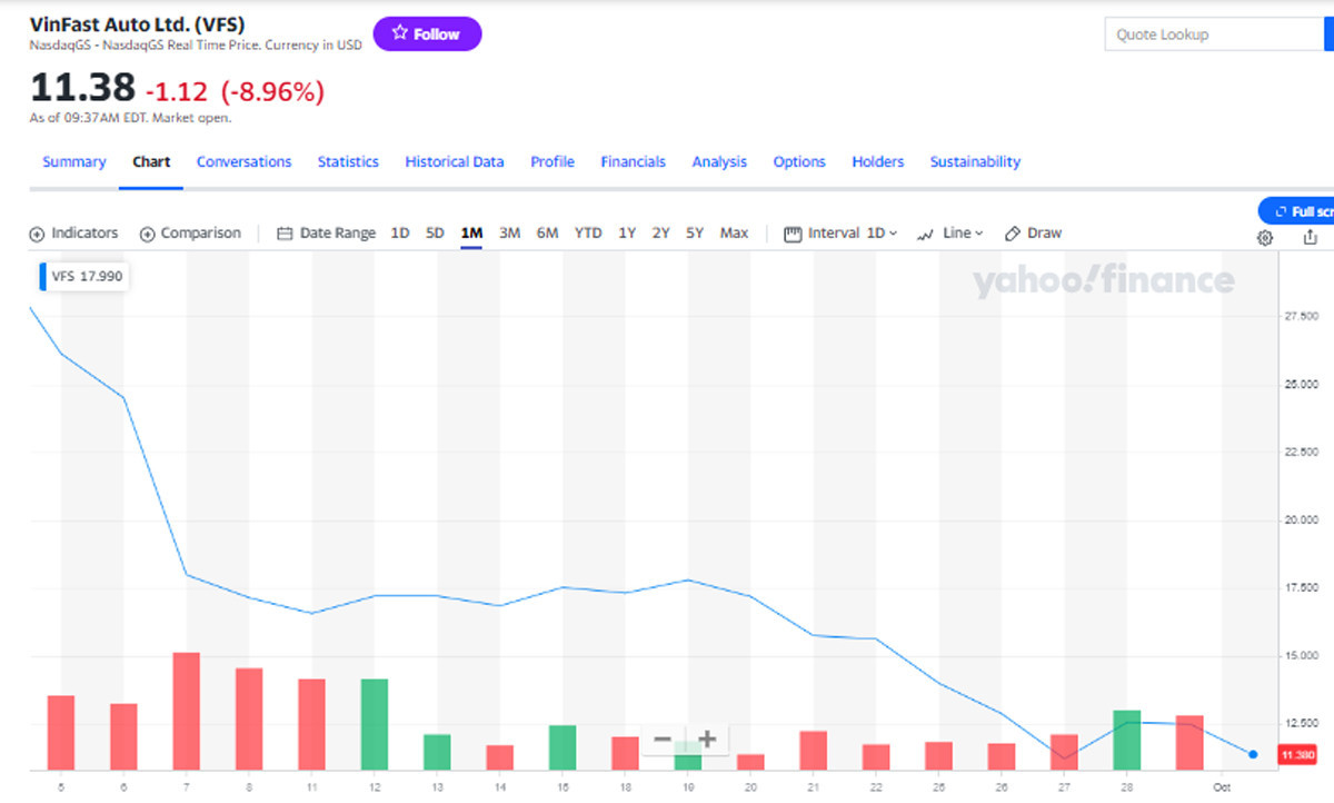 - Cổ phiếu VinFast giảm mạnh, vốn hóa trở về mức ban đầu