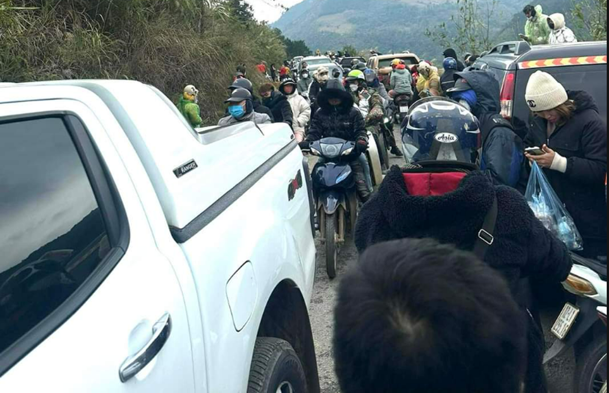 Những đoàn xe nối nhau lên đỉnh Mẫu Sơn. Clip: H.N.