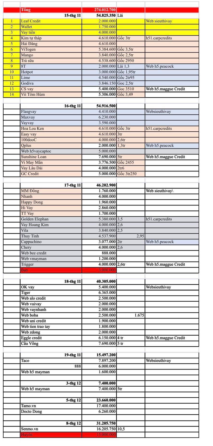 Theo anh D., em gái anh kể rằng ban đầu chỉ vay mấy triệu với mức trả hàng tháng chỉ mấy trăm nghìn. T. nghĩ mỗi tháng chỉ mấy trăm nghìn là một số tiền nhỏ, nhưng sau đó không trả được và cũng không dám nói ra. Khi không trả được thì các app mới lại mở ra và cho vay đủ tiền để đáo hạn. Bị đe doạ nên em tiếp tục vay rồi vay nữa, dẫn tới khoản nợ lớn.