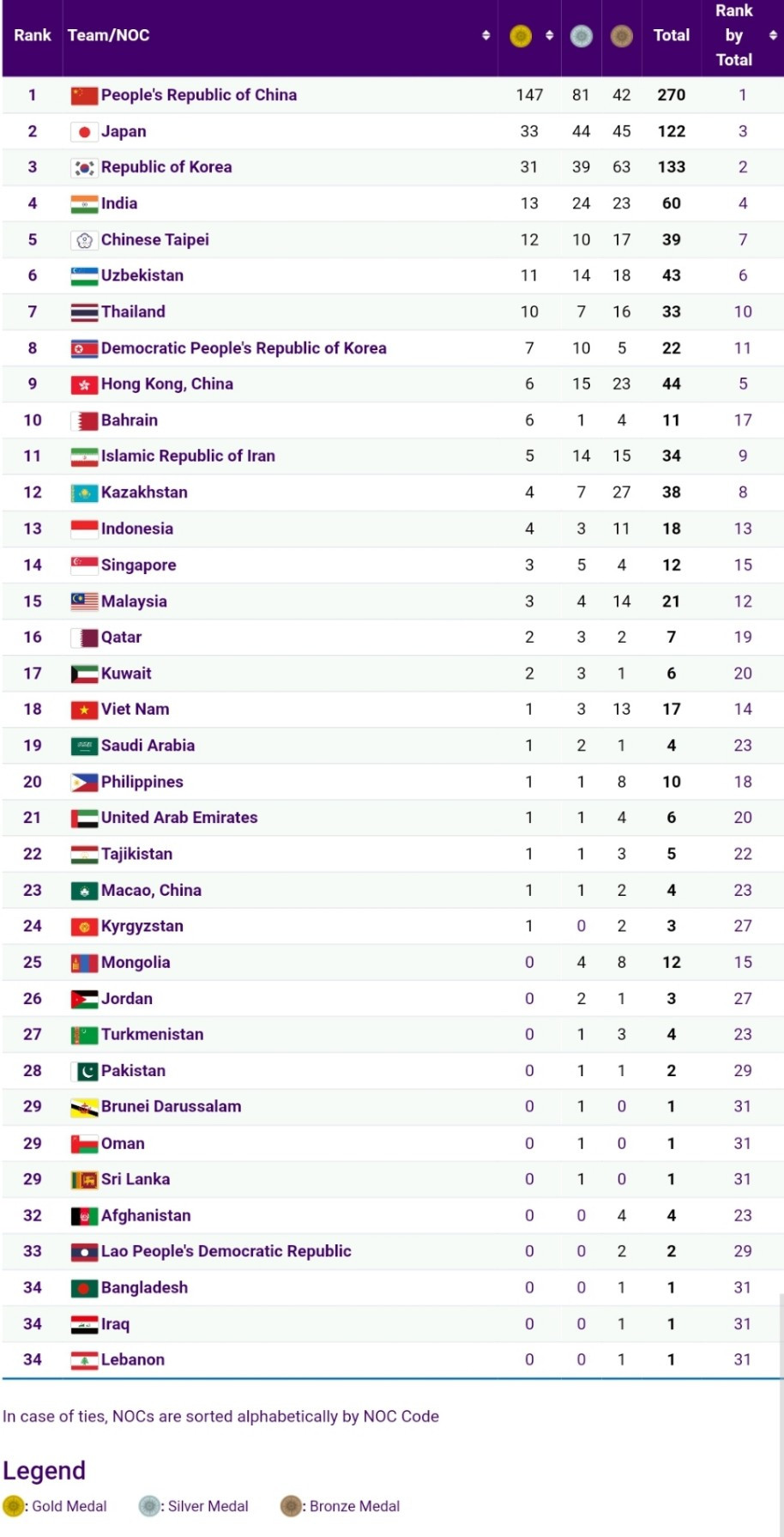 Bảng tổng sắp huy chương ASIAD 19