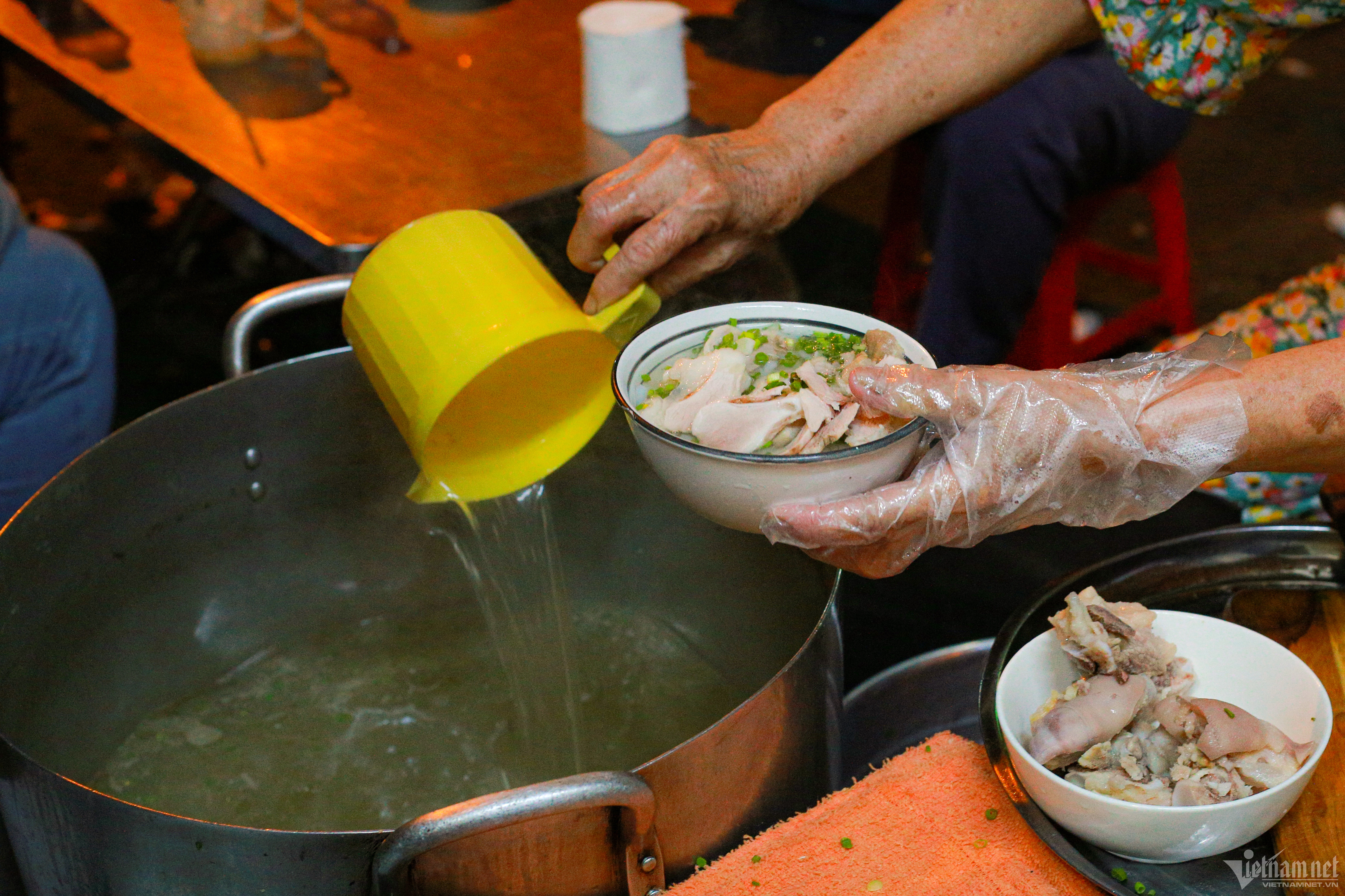 “Phần thịt được tôi lấy từ các mối lớn, đảm bảo tươi ngon và an toàn. Sau khi nhận thịt, tôi sơ chế để lọc bỏ bụi bẩn, mùi hôi, sau đó hầm. Thịt và xương hầm vào ngày hôm trước, đến khuya thì bắc nước lèo lên hầm và bắt đầu bán cho khách vào 2h30-3h. Tôi không để thịt quá mềm, hầm sao phải giữa được độ dai, giòn thì khách thích hơn”, bà Tuyết chia sẻ.