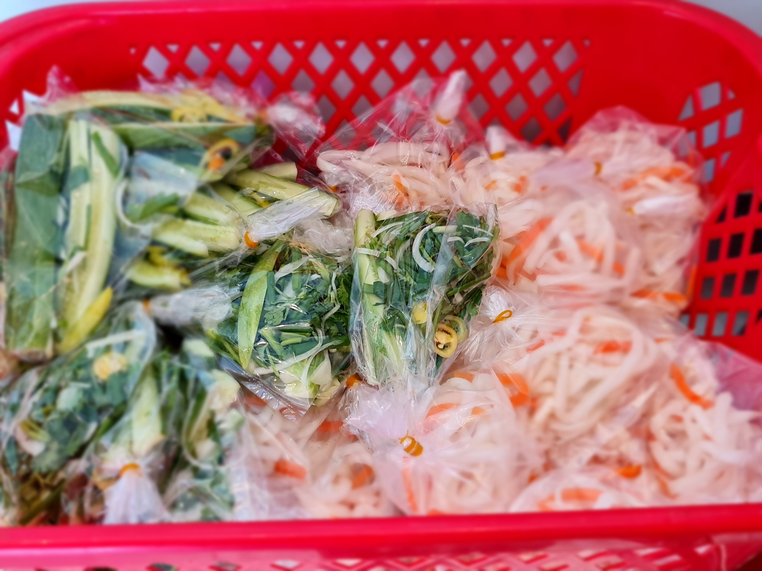 Rau, dưa ăn kèm bánh cũng được đóng gói kĩ càng