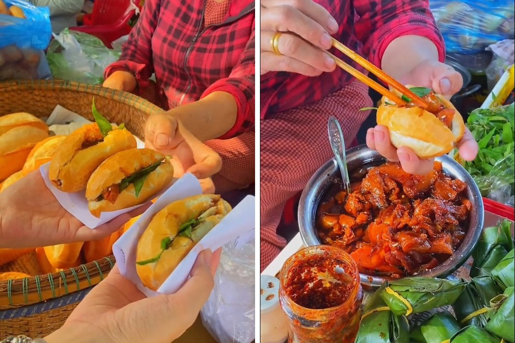 Khoảng 17 - 19h, đi qua cổng chợ Đồng Xuân (Hoàn Kiếm, Hà Nội), nhiều người thường để ý tới một xe bánh mì nhỏ nhưng tấp nập, đông đúc. Vợ chồng chủ quán người nhanh tay cắt bánh, người thoăn thoắt xếp từng miếng xá xíu, dưa chuột... vào chiếc bánh mì nóng hổi, rưới thêm sốt, chút tương ớt cay nồng.