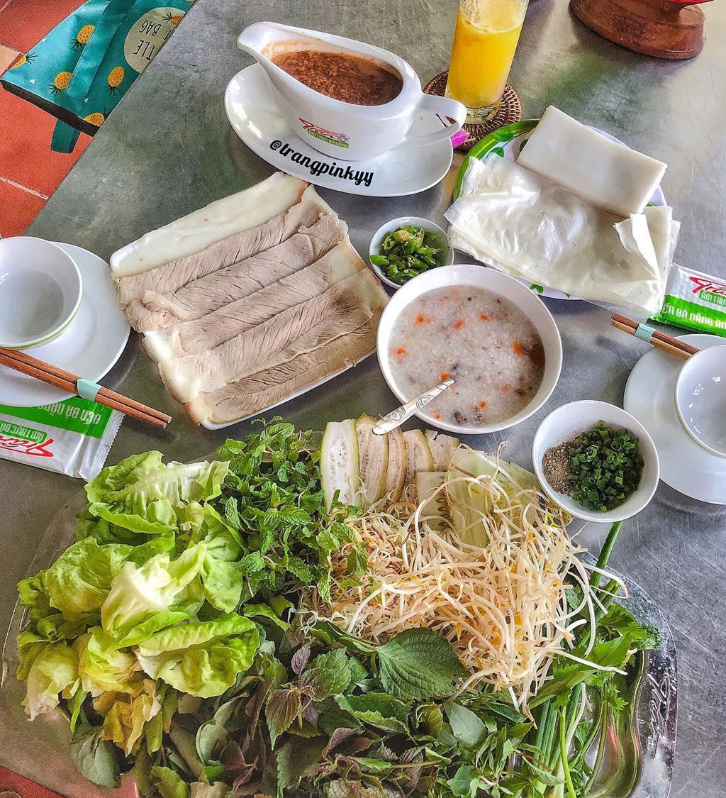 Bánh tráng cuốn thịt heo:Nhắc về ẩm thực Đà Nẵng, không thể không kể đến bánh tráng cuốn thịt heo, món ăn dân dã nhưng đậm đà của người miền Trung. Để có được thức ngon chiếm trọn cảm tình thực khách, những người làm bánh rất khắt khe trong khâu chọn nguyên liệu, phải là tráng phơi sương, không quá giòn và thịt heo loại ngon luộc chín vừa tới, đạt độ dẻo, mềm nhất định.Ảnh:87kirstyn,trangpinkyy. |