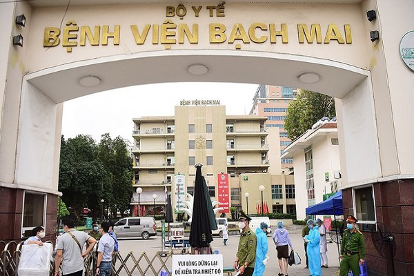 Tối 21/10, nhiều lượt ô tô chở công an, kiểm sát viên ra vào khu vực tòa nhà Việt - Nhật, Bệnh viện Bạch Mai (Hà Nội).