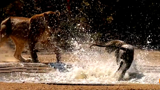 Lợn rừng dũng mãnh húc tung báo đốm cứu con