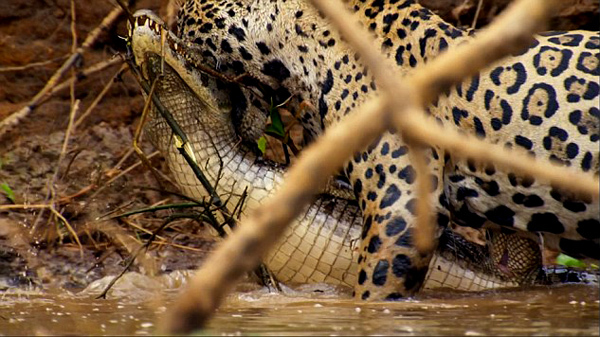 Đoạn clip mới được chiếu lại trên kênh BBC hôm 20/11 vừa qua khiến người xem kinh ngạc về khả năng săn mồi của con báo. Con báo đốm lao xuống sông ngoạm đầu cá sấu lôi lên bờ xẻ thịt.