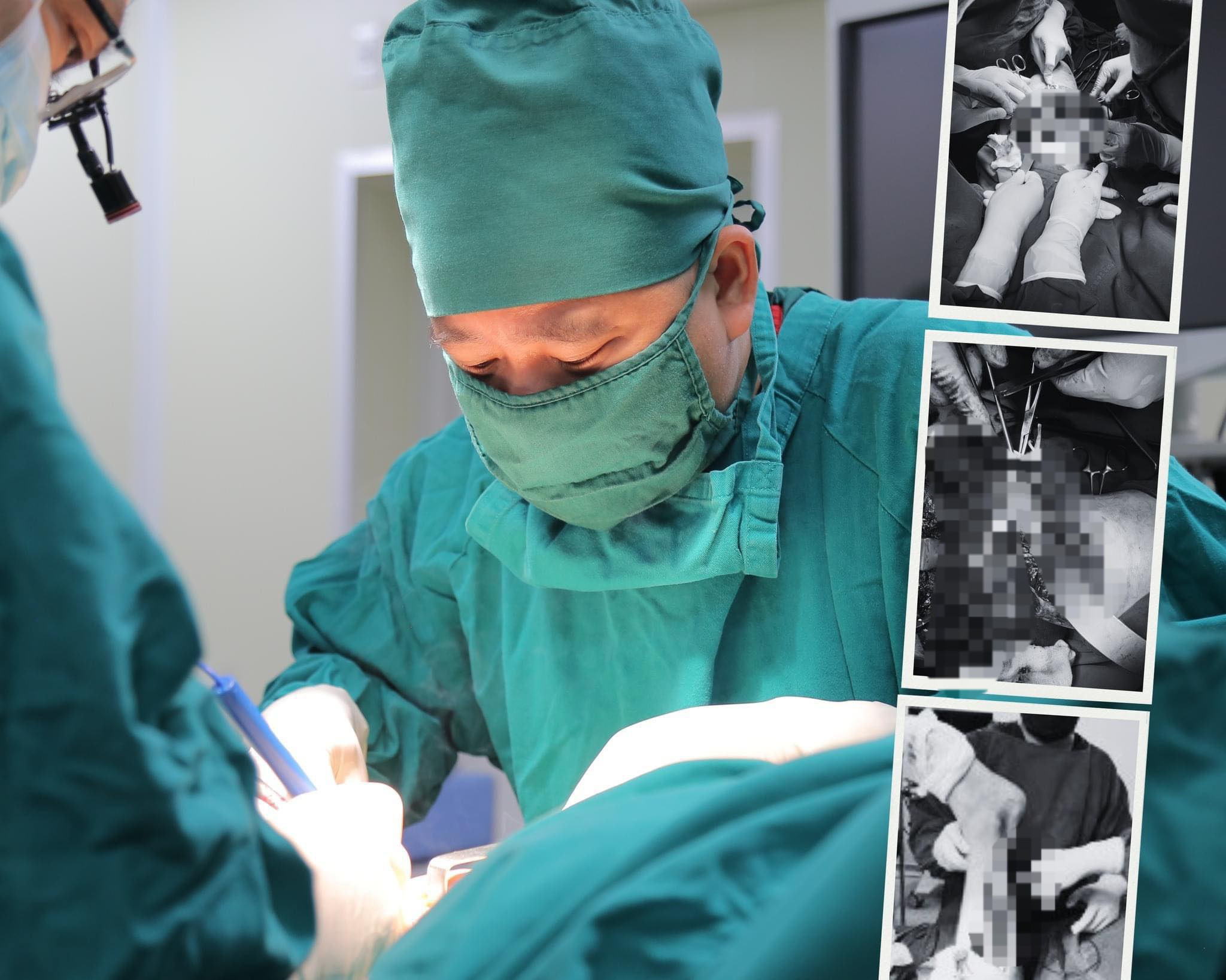 Ngay lập tức, 2 ê-kíp bác sĩ chuyên khoa được điều động. Ê-kíp thứ nhất do bác sĩ Lâm tiến hành nối mạch máu. Trong mổ, bác sĩ phát hiện đây là vết thương vừa rộng vừa rất phức tạp, đứt hoàn toàn bó mạch thần kinh vùng khoeo chân, đứt chỏm xương mác và toàn bộ khối cơ mặt sau khoeo và 1/3 trên cẳng chân.