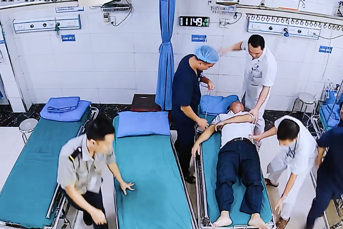 Bệnh nhân quê ở Phú Xuyên, Hà Nội được đưa vào Khoa Cấp cứu, Bệnh viện Thanh Nhàn. Lập tức, quy trình báo động đỏ toàn viện được kích hoạt. Người bệnh được đặt ống nội khí quản, nối máy thở, hồi sức tích cực để giành lại từng nhịp thở.