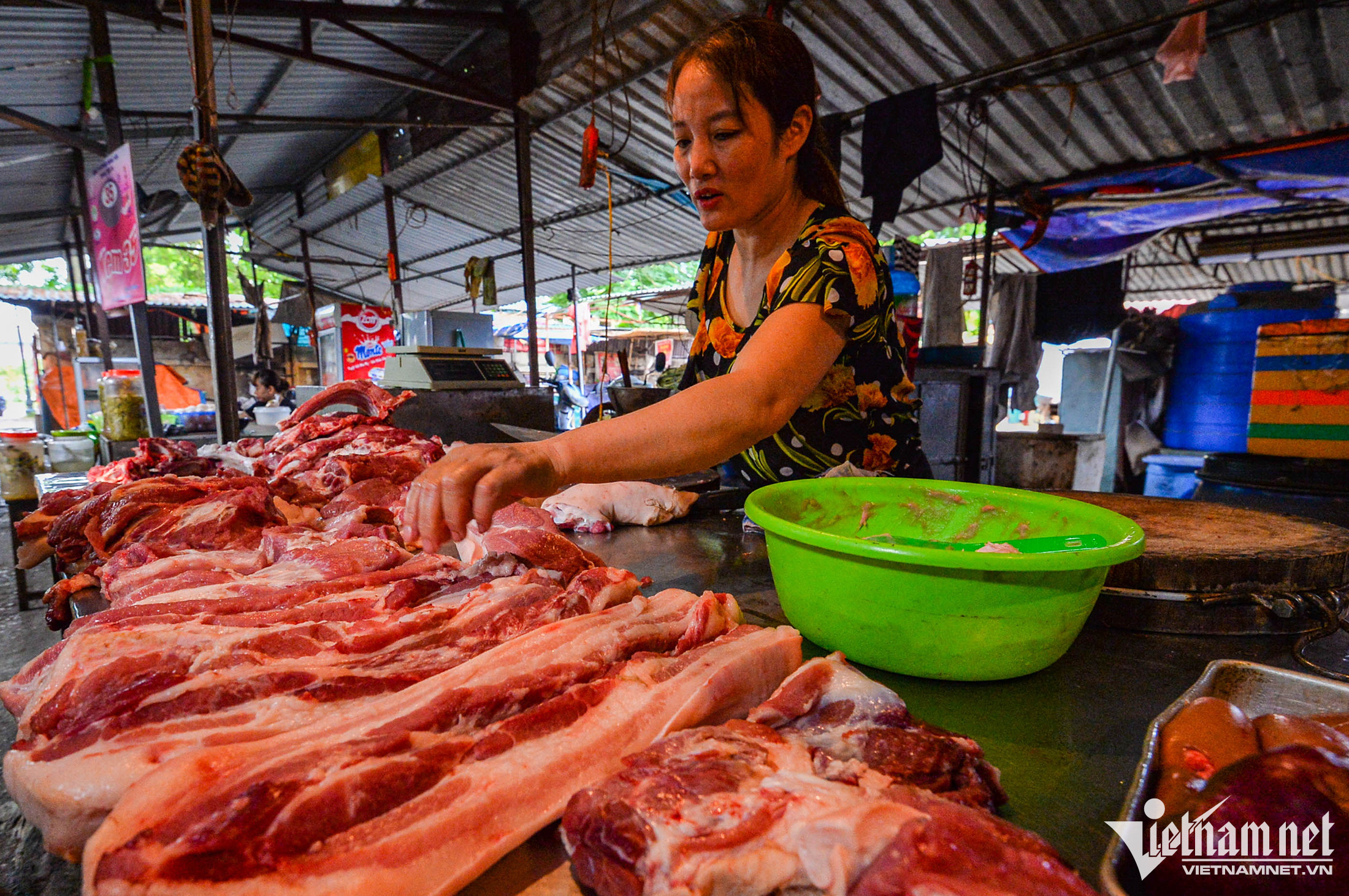 Chị Hoàng Thị Trà Giang - tiểu thương bán thịt lợn tại chợ - nhận xét, giá thịt tăng mạnh 2 tháng nay. Dịp này, giá khó giảm vì giá thịt lợn bên Trung Quốc tăng cao, lợn được thu mua chở sang đó nhiều, nguồn cung bị ảnh hưởng.