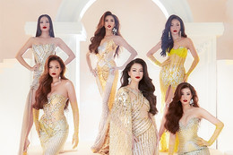 Hoa hậu Phương Khánh đảm nhận vị trí first face, catwalk thần thái trong thiết kế dạ hội vàng nổi bật, được đính đá lấp lánh theo kiểu body chain, phối cùng áo choàng thướt tha. Kết màn bộ sưu tập là Hoa hậu Ngọc Châu với đầm 2 dây ôm sát, điểm xuyết các chi tiết hình ngôi sao lạ mắt, sải bước cùng áo choàng trắng tua rua tạo hiệu ứng thị giác.