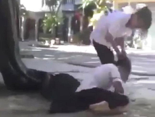 Thầy giáo dùng thước gỗ và mũ bảo hiểm đánh liên tiếp 2 nam sinh