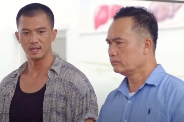 Trong 'Bão ngầm' tập 56, Hạ Lam vờ đóng kịch cùng Hải Triều để đàn em của ông trùm Quách Đại Đức không nghi ngờ khi cô về thăm bố tại bệnh viện.