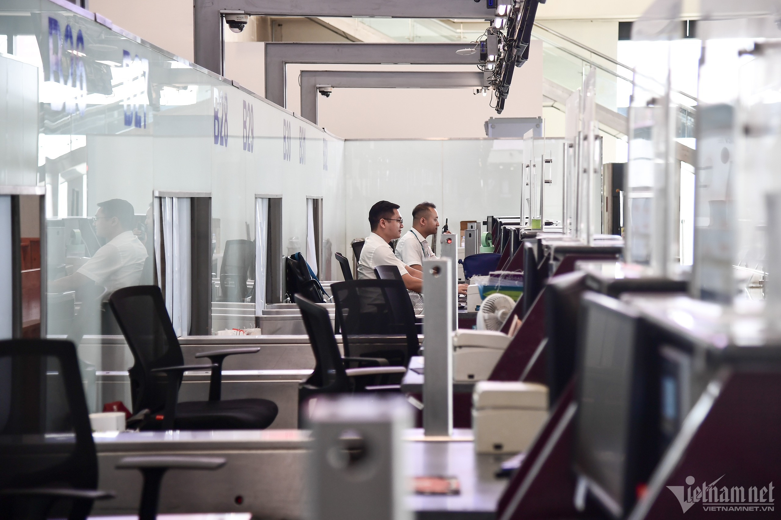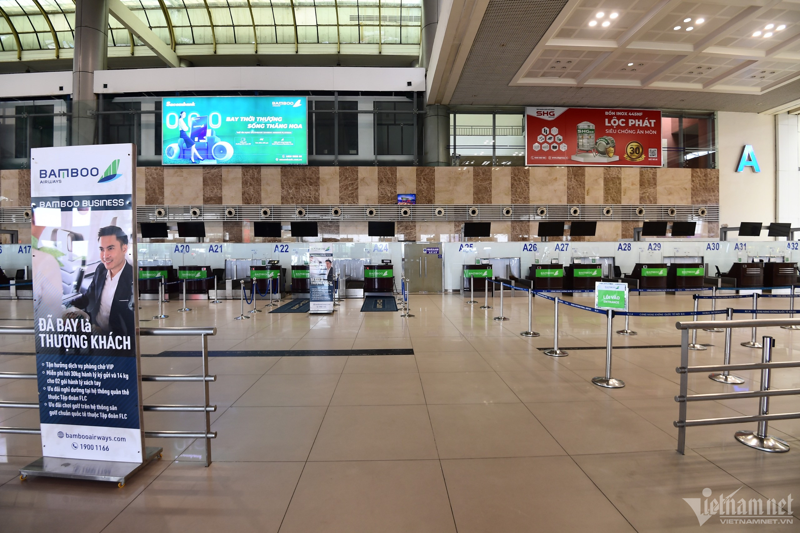 Trưa 18/7, các sảnh A, B, E nhà ga T1, Cảng hàng không quốc tế Nội Bài (Hà Nội) vắng hoe. Lượng khách đến làm thủ tục bay thưa thớt.