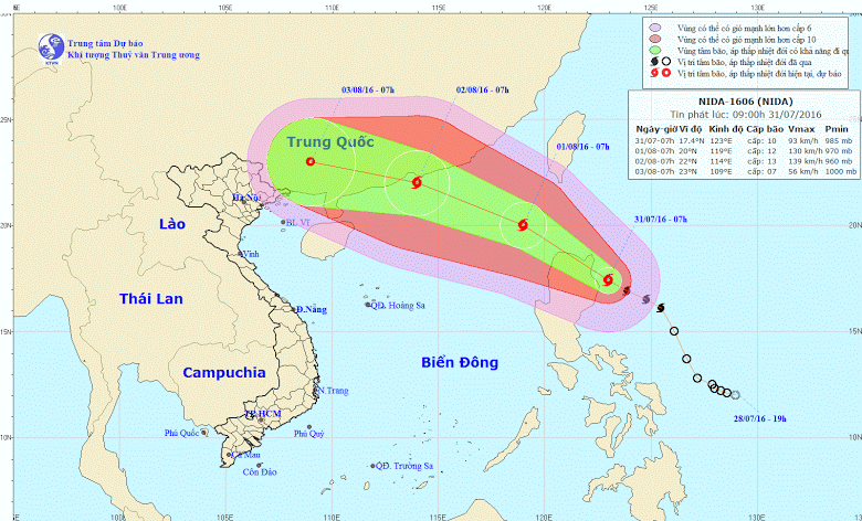 Áp thấp nhiệt đới ngoài biển Đông đã mạnh lên thành bão, tên quốc tế là Nida. Hiện gió trong bão giật cấp 11-12 và đang áp sát biển Đông.