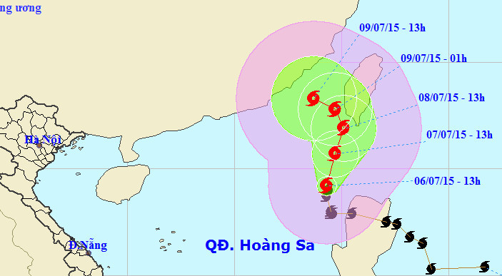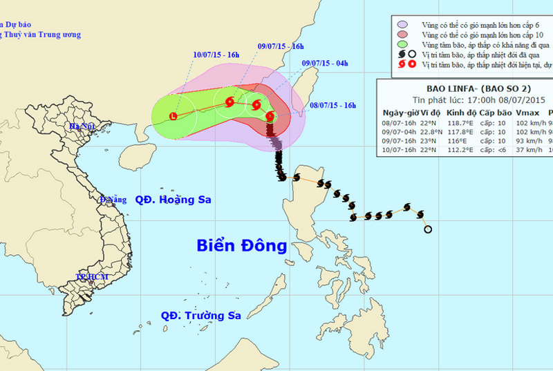 Ngày 7/7, vị trí tâm bão số 2 ở vào khoảng 20,2 độ Vĩ Bắc; 119,3 độ Kinh Đông, trên vùng biển phía Tây Bắc đảo Luzon (Philippins) với sức gió mạnh nhất ở vùng gần tâm bão mạnh cấp 9.