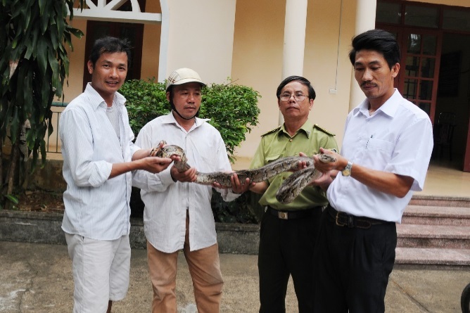 Hai người dân chuyển giao trăn quý cho Nhà nước