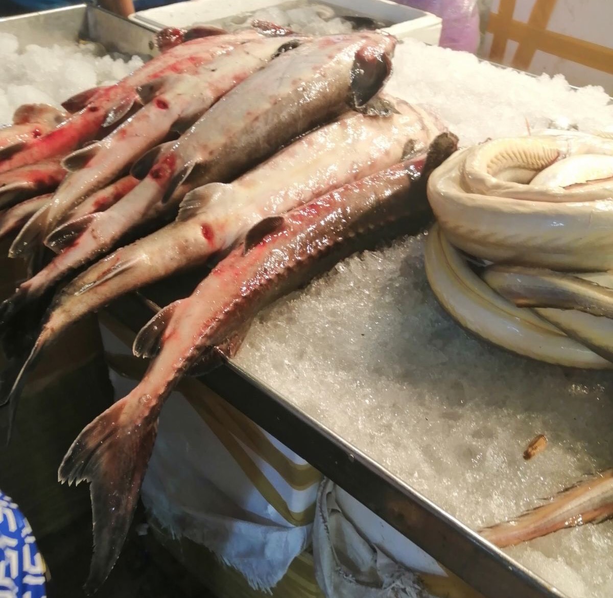 Cá tầm nhập khẩu từ Trung Quốc bày bán với giá rẻ khắp các chợ hải sản.
