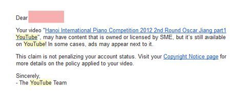 Thông báo của Youtube về việc video có khả năng chứa đựng nội dung thuộc quyền sở hữu của tài khoản khác |