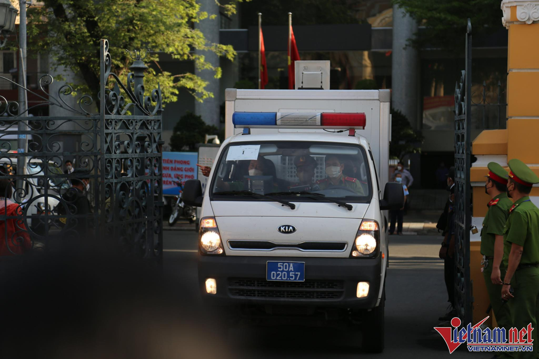 8h10, các bị cáo được đưa vào phòng xử. Mặc dù, đã phát thẻ tác nghiệp nhưng khi vào khu vực xét xử, các phóng viên vẫn bị thu điện thoại. Điều này đã gây rất nhiều khó khăn cho phóng viên khi thực hiện đưa tin.