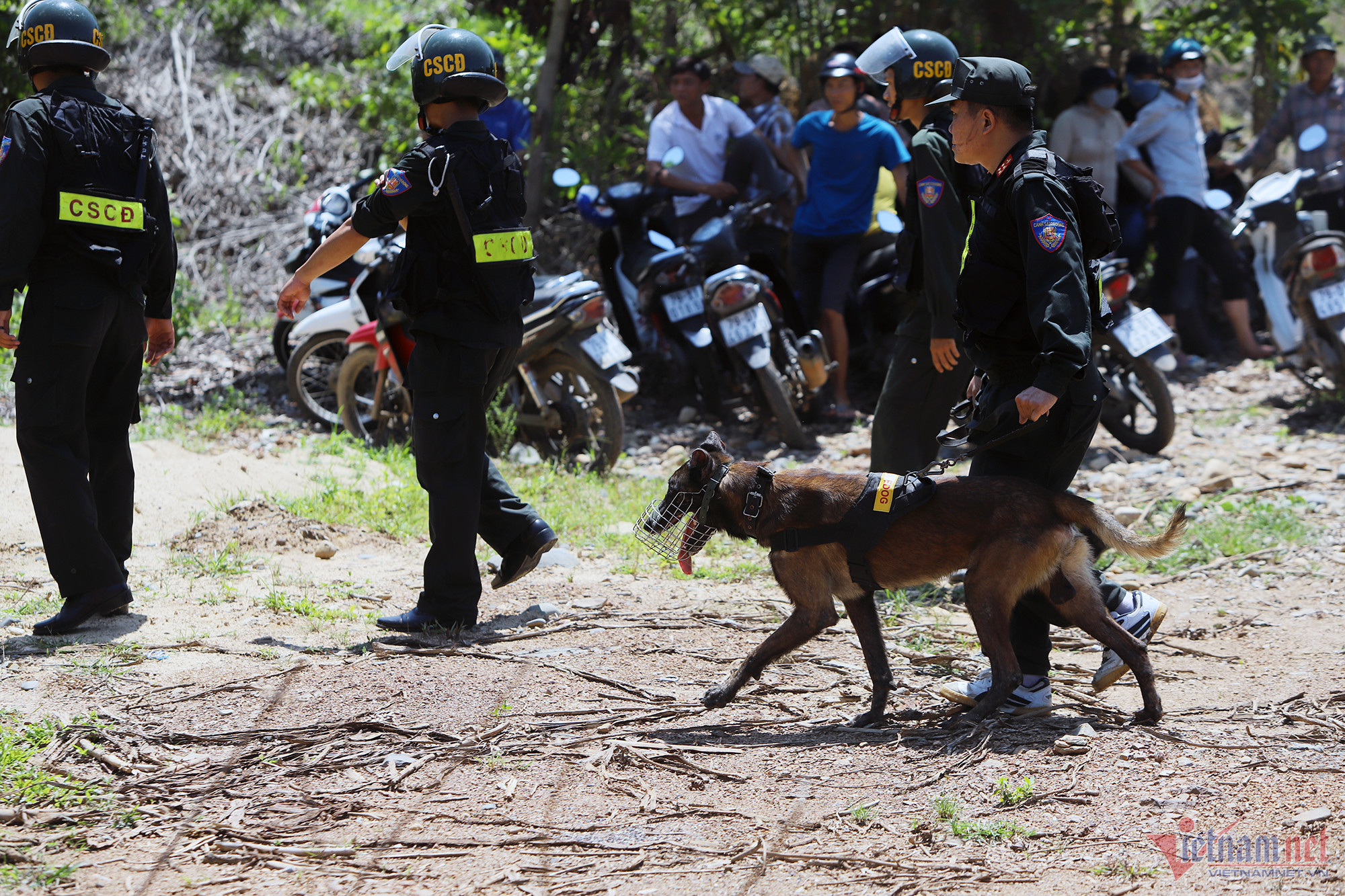 Công an đang đưa nghi phạm xuống núi để điều tra.