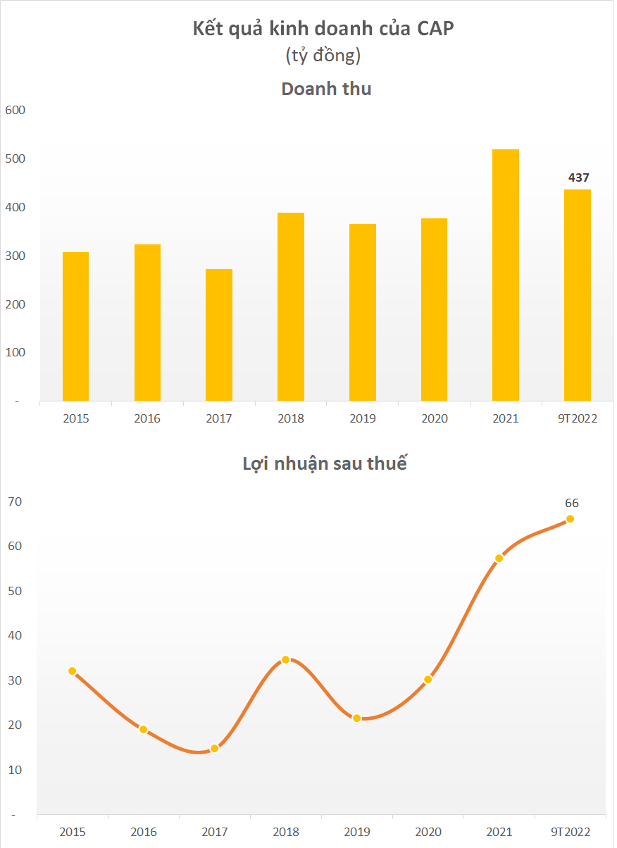 Đáng chú ý, trên sàn chứng khoán, CAP là một trong những doanh nghiệp chi trả cổ tức bằng tiền mặt đều đặn nhất với tỷ lệ thường từ 30-40% mỗi năm. Hiện tại, cổ phiếu CAP giao dịch quanh vùng giá 80.000 đồng/cp, vốn hóa thị trường đạt gần 627 tỷ đồng.