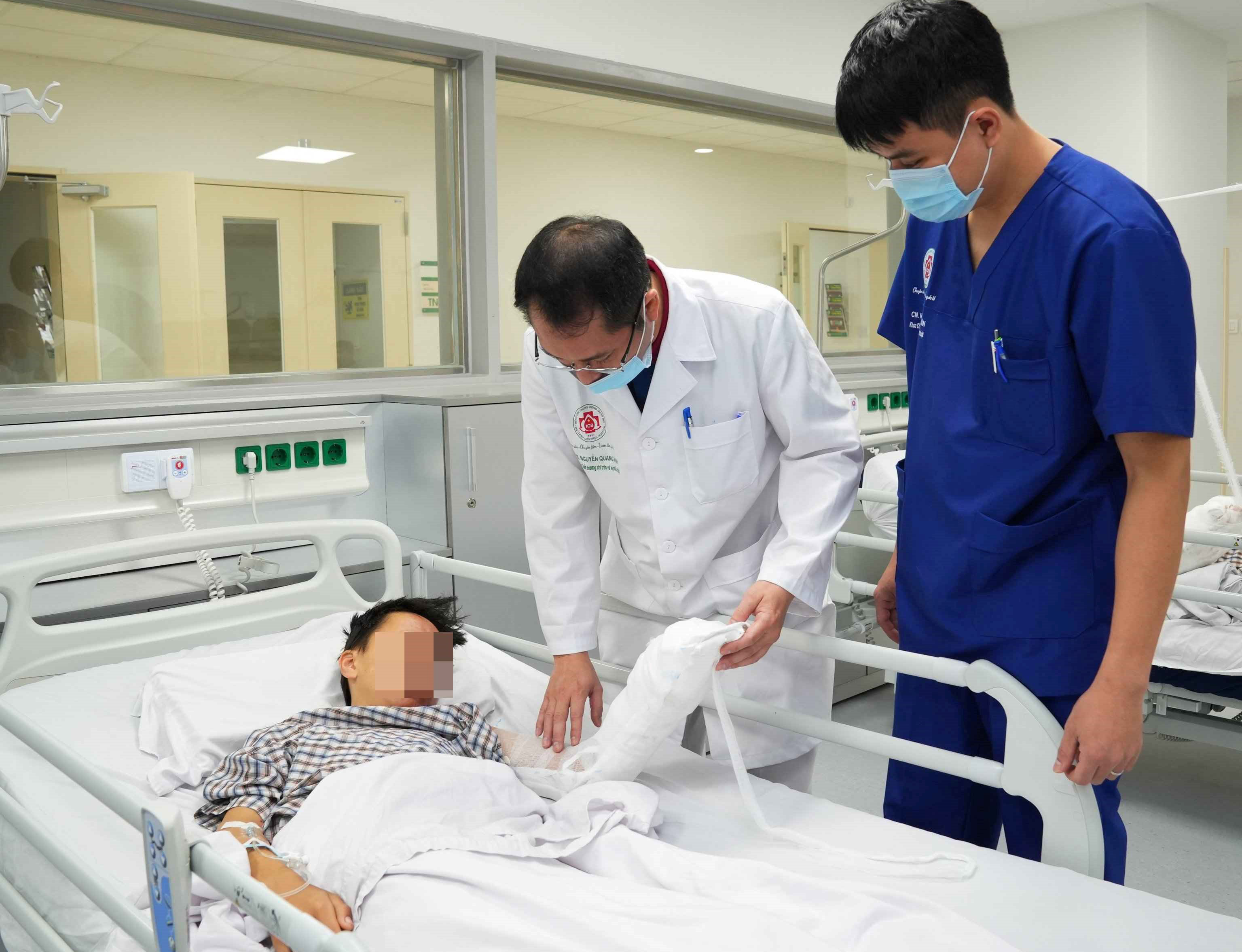 Gia đình lập tức đưa bé đến bệnh viện địa phương sơ cứu và chuyển lên TP.HCM trong đêm.