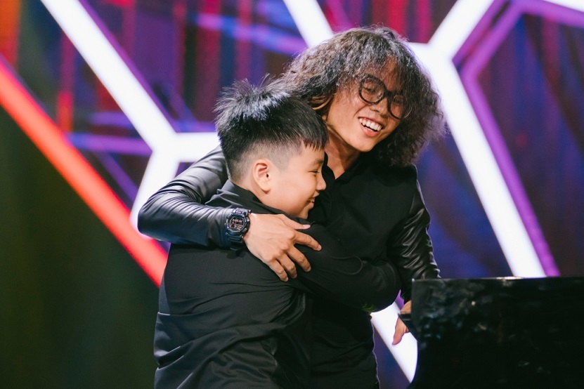 | Bé Đăng Duy và nghệ sĩ piano Tuấn Mạnh mở màn đêm thi. |